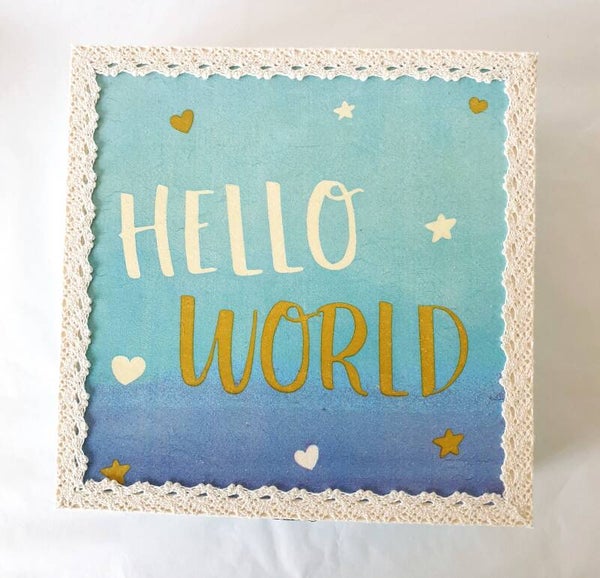 Die Box aus Holz wurde mit Acryl- und/oder Kreidefarbe bemalt und mit der Serviettentechnik in liebevoller Handarbeit dekoriert.