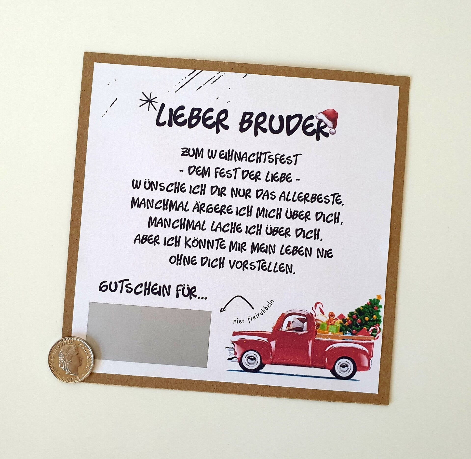 Gutschein Rubbelkarte Weihnachten LIEBER BRUDER