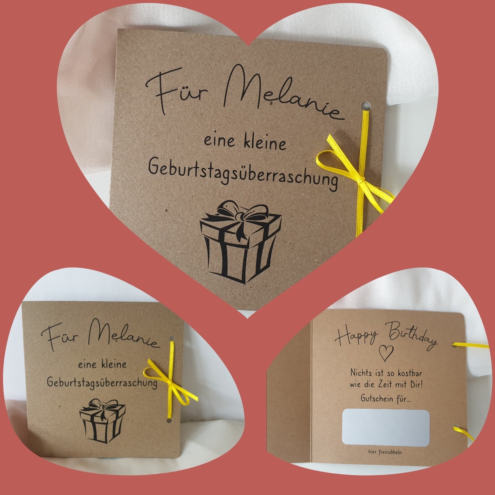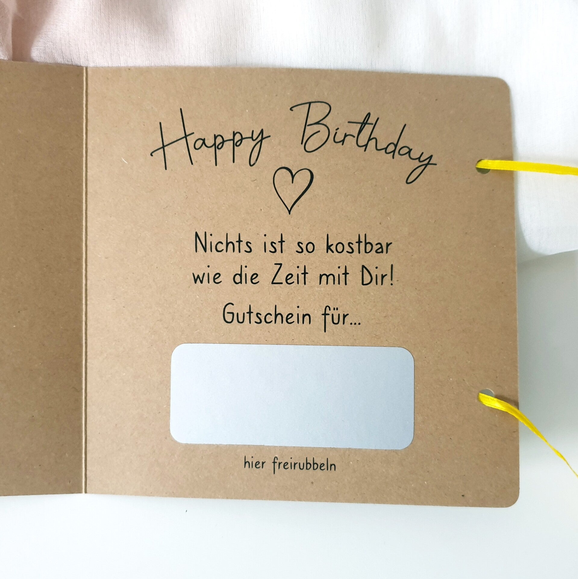 Bitte Name des Empfängers und Text für das Rubbelfeld angeben.