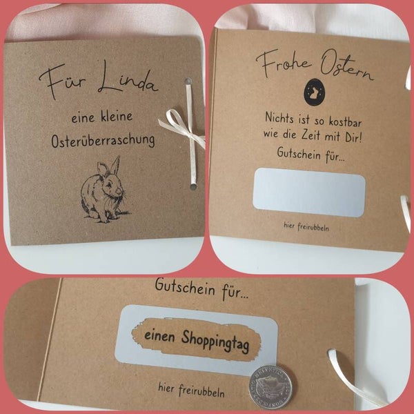 Bitte Name des Empfängers und Text für das Rubbelfeld angeben.