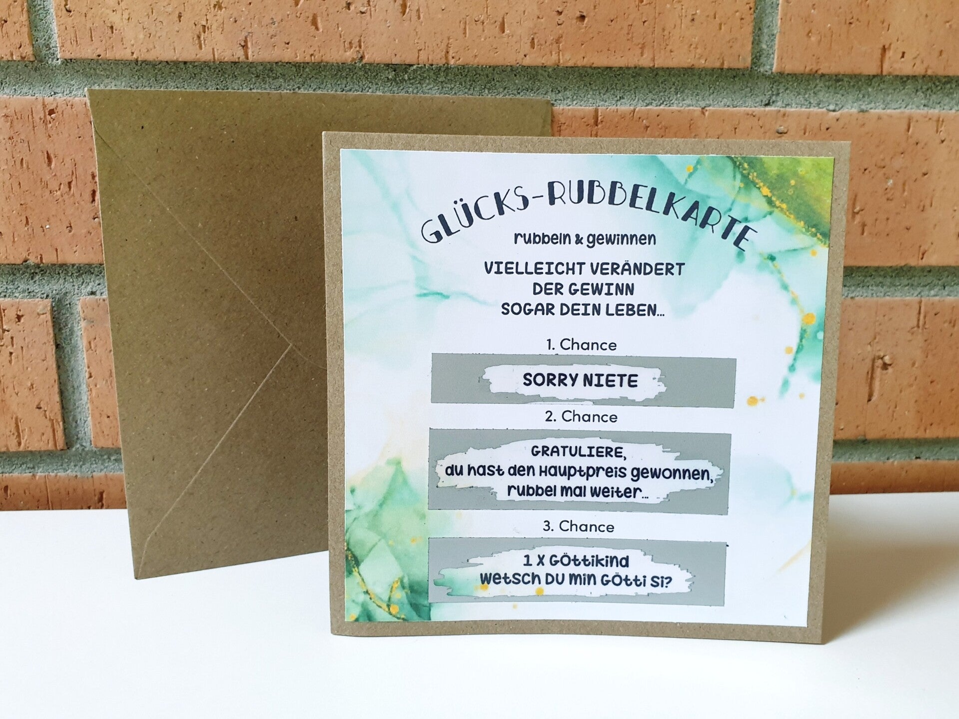 Botschafts Rubbelkarte GOTTI/GÖTTI FRAGE Glücks-Rubbelkarte