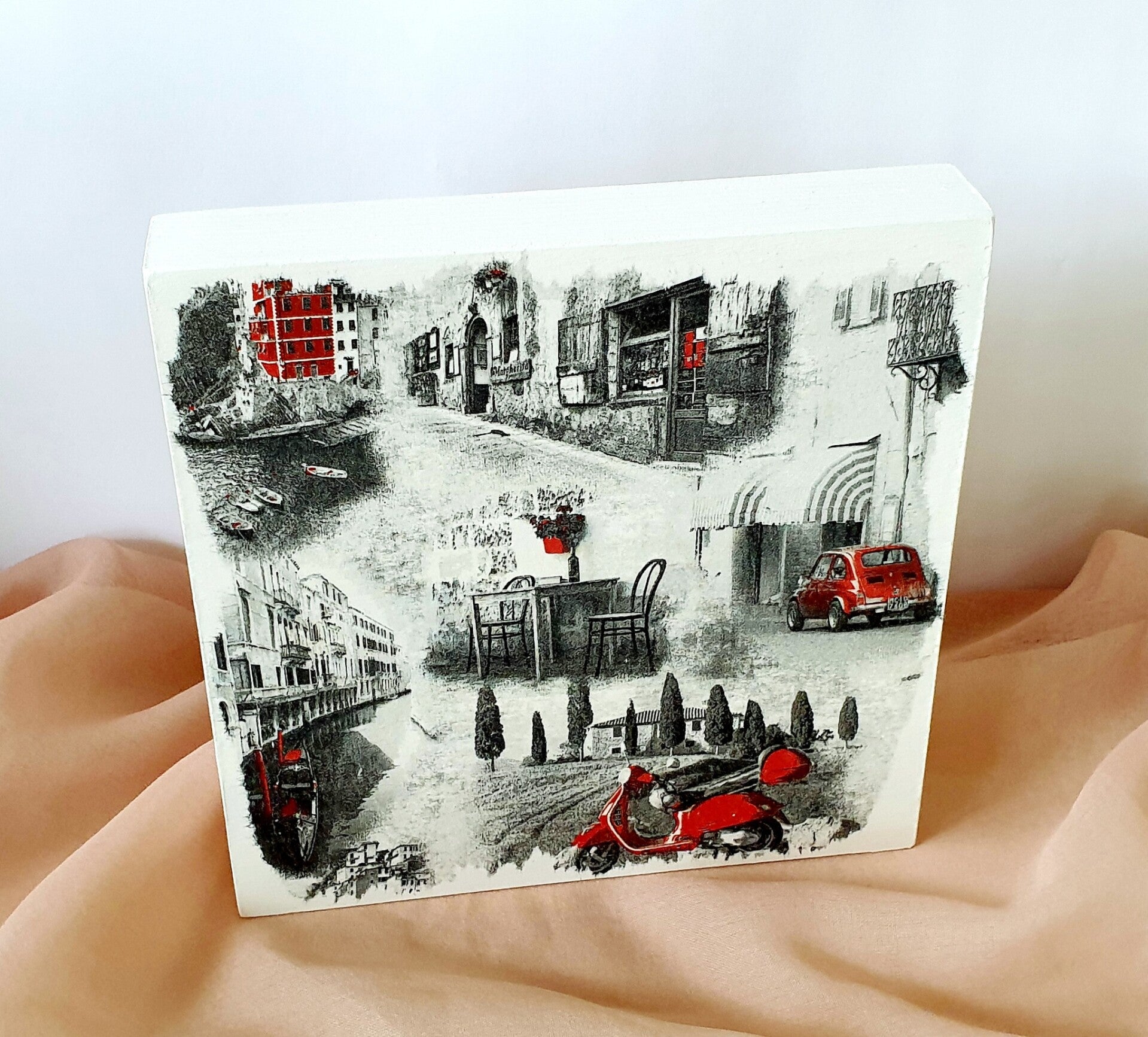 Holzbild, ca. 16,2 x 16,2 x 3cm