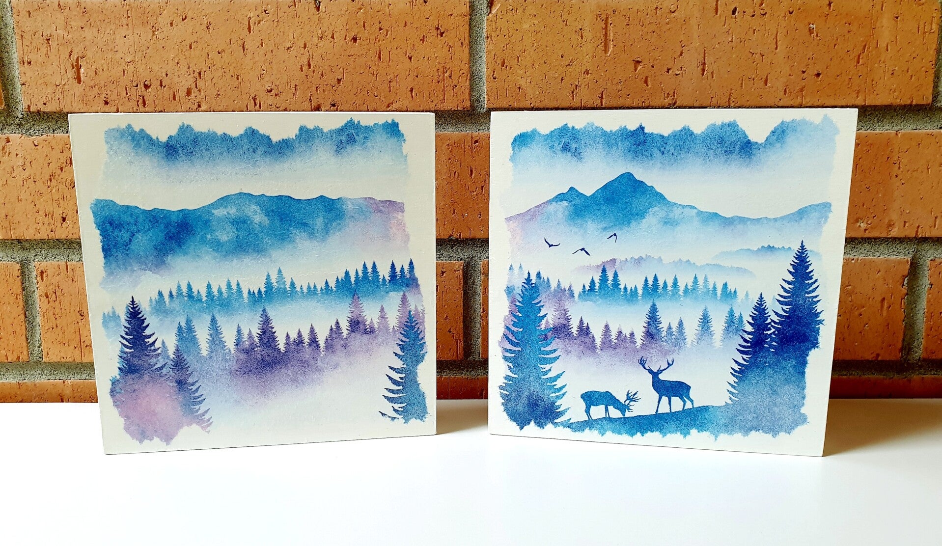 2 Holzbilder, ca. 16,2 x 16,2 x 3cm