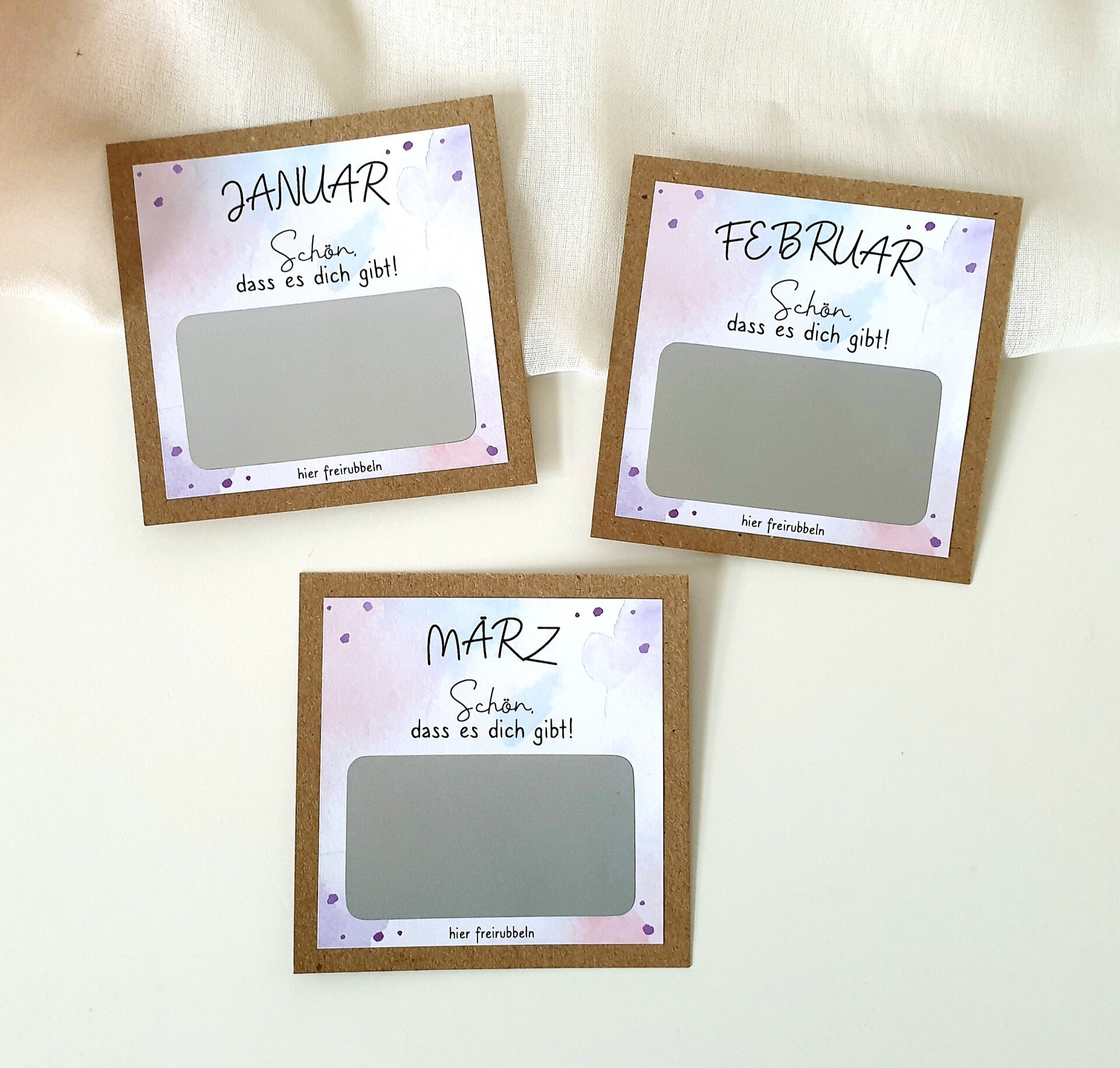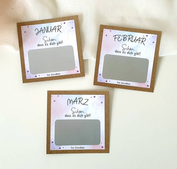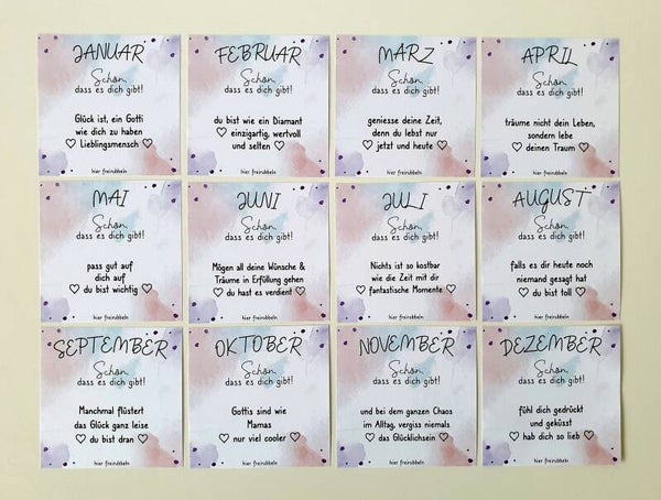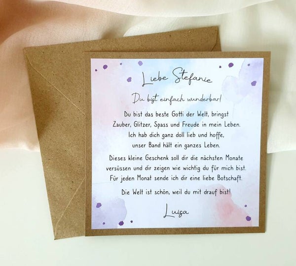 Bitte den Namen der Empfängerin, sowie den Namen des Absenders und den Startmonat angeben.