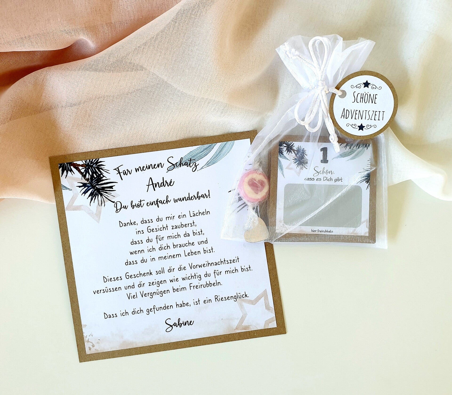 Für die Grusskarte bitte den Namen des Empfängers und des Absenders, sowie die Texte für die 8 Gutscheine angeben.