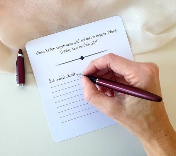 - Auf der Rückseite mit Linien & schönem Spruch (10 zur Auswahl, siehe Fotos)