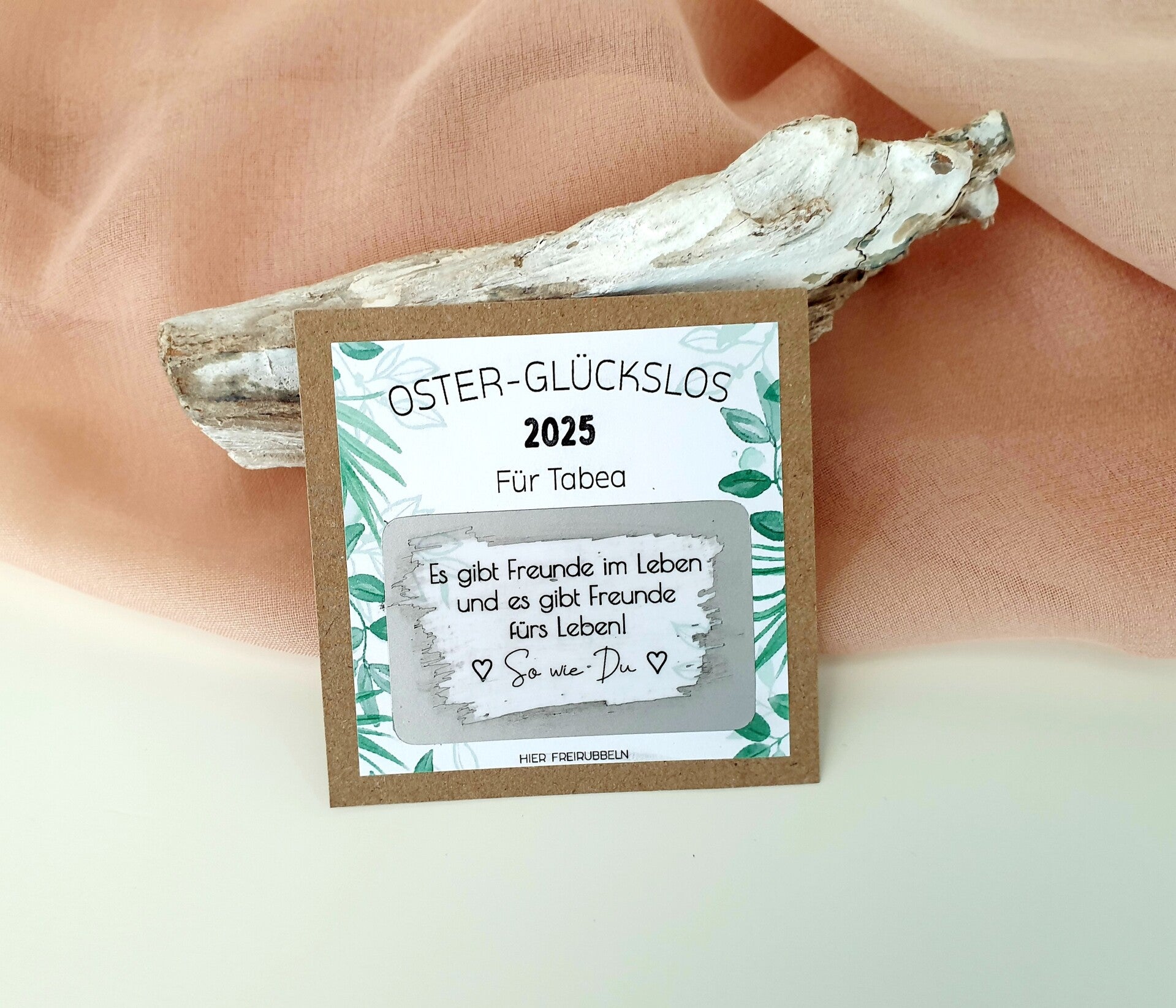 Für das Los bitte den Namen des Empfängers und den Rubbeltext mitteilen.