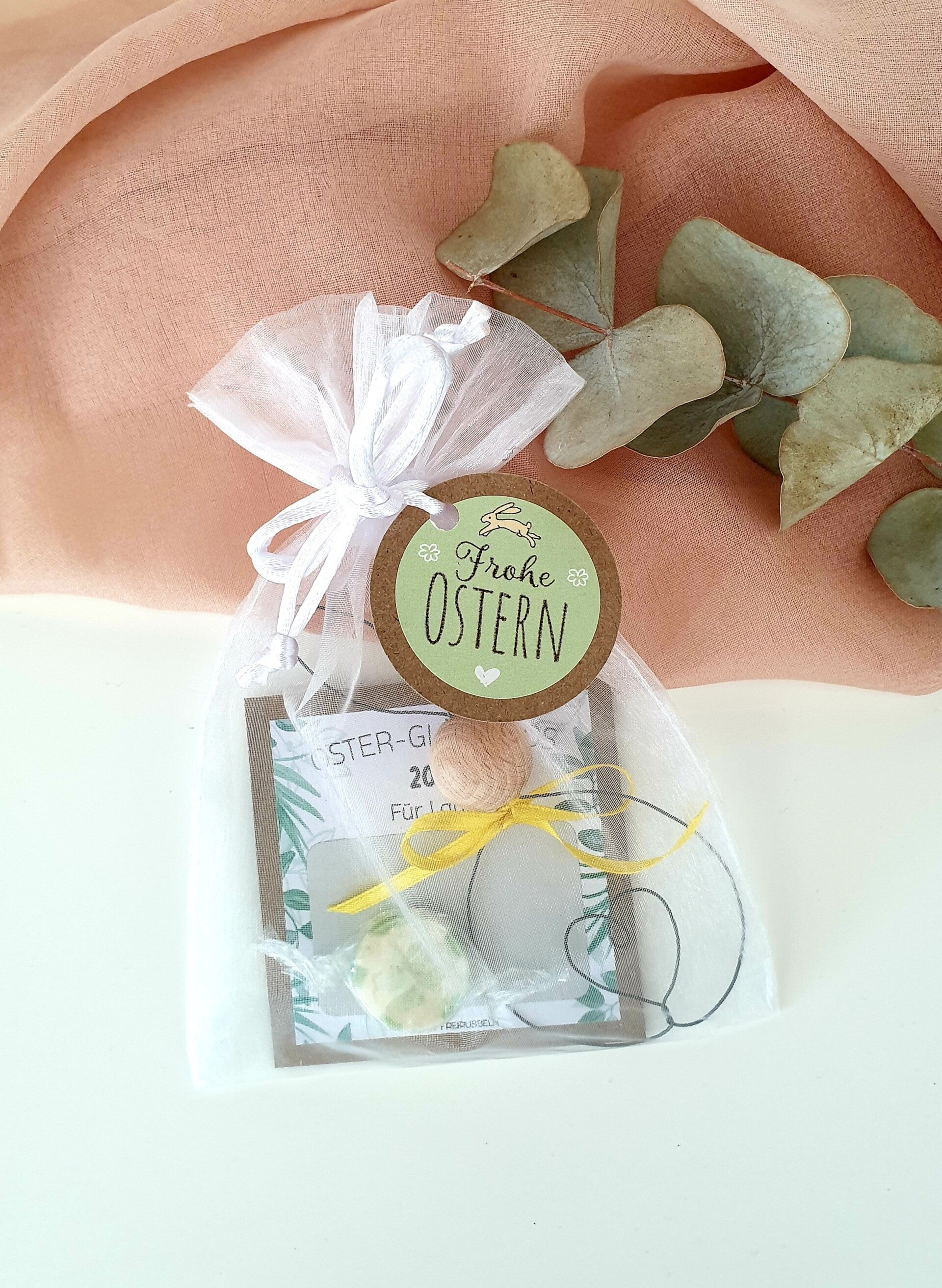 Hier kommt etwas Glück angehoppelt. Ein Säckchen mit einem personalisiertem Glückslos zum Freirubbeln, einem mit viel Liebe gemachten Deko-Drahthasen und einem Glücksbonbon. Das perfekte Glücks-Geschenk oder Mitbringsel zu Ostern ♡