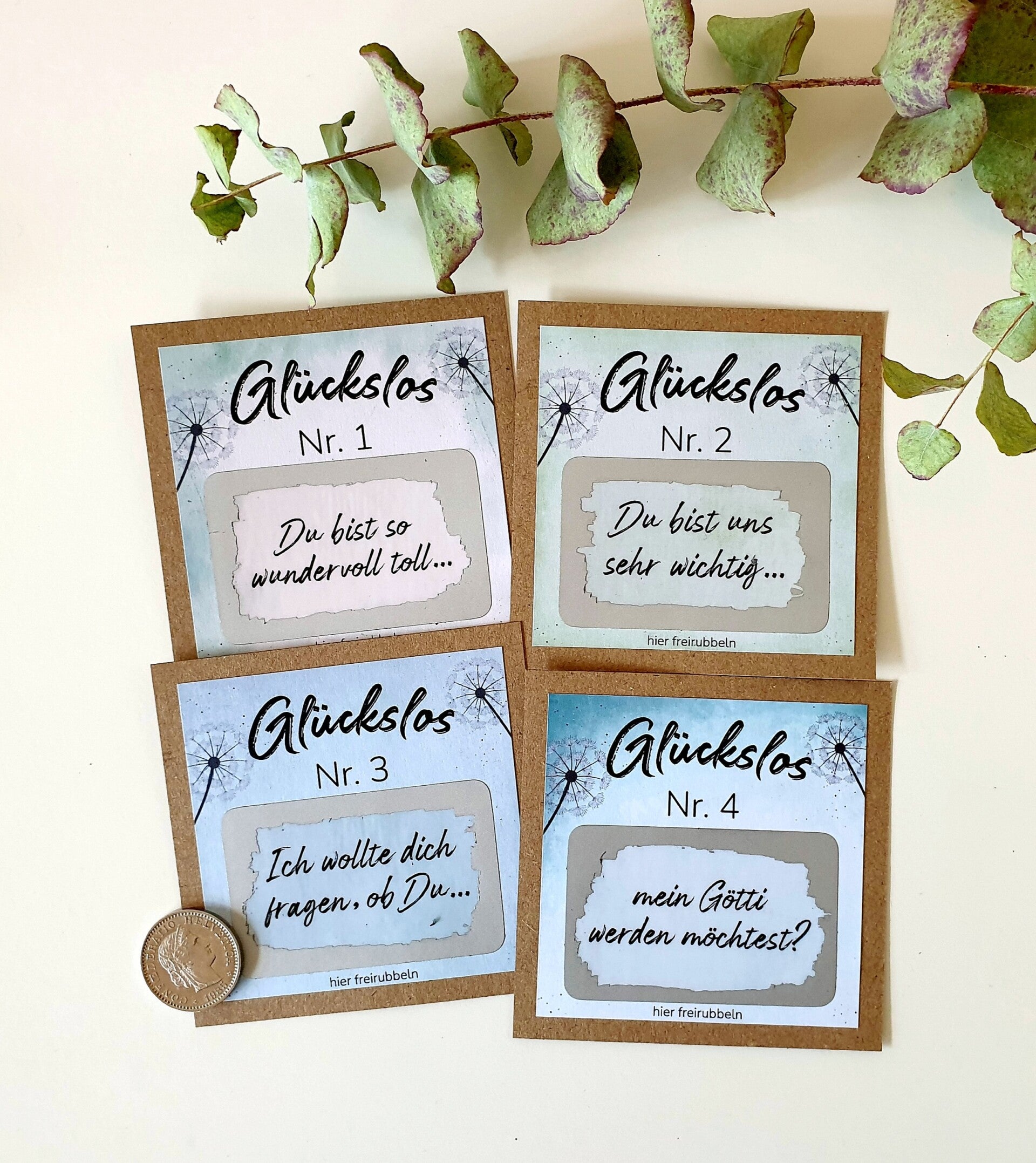 • 4 Glücks-Rubbellose, 7,5 x 7,5cm