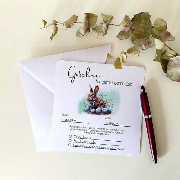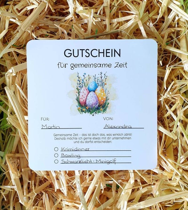 Das Gutschein-Karten-Set mit tollen Ostermotiven eignet sich perfekt zum Verschenken mit persönlicher Note. Fülle die Karte aus und verschenke einen optisch hübschen Blickfang.