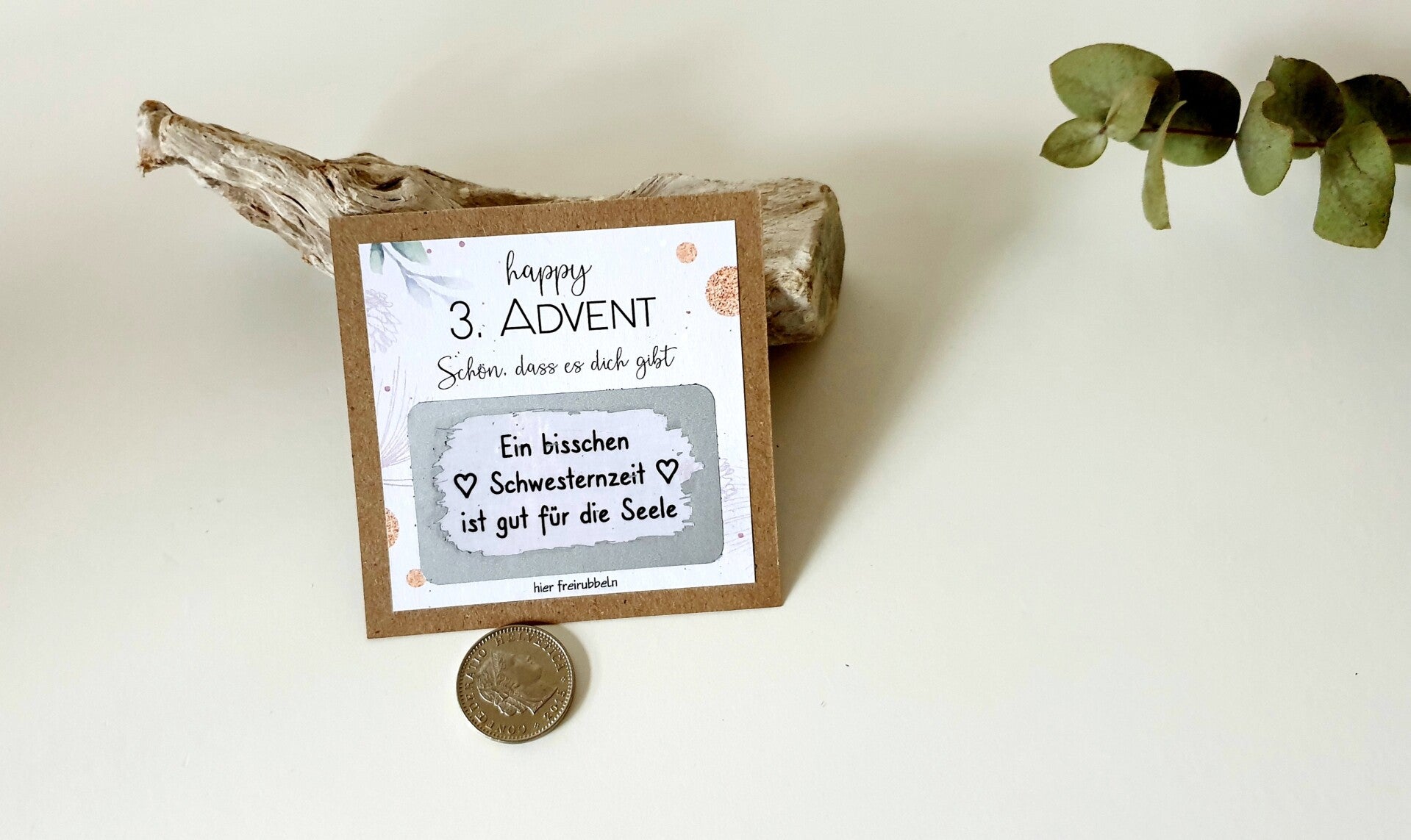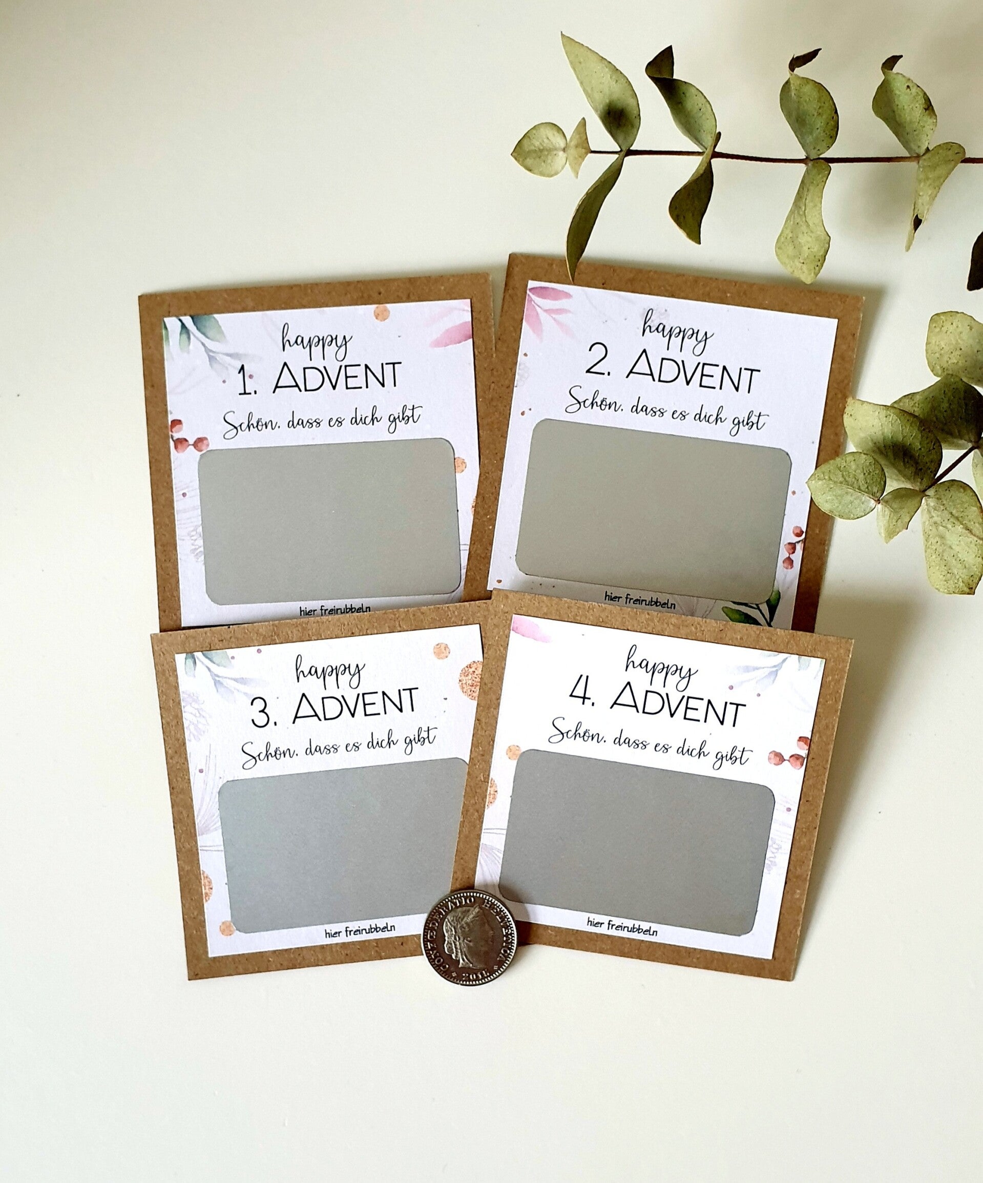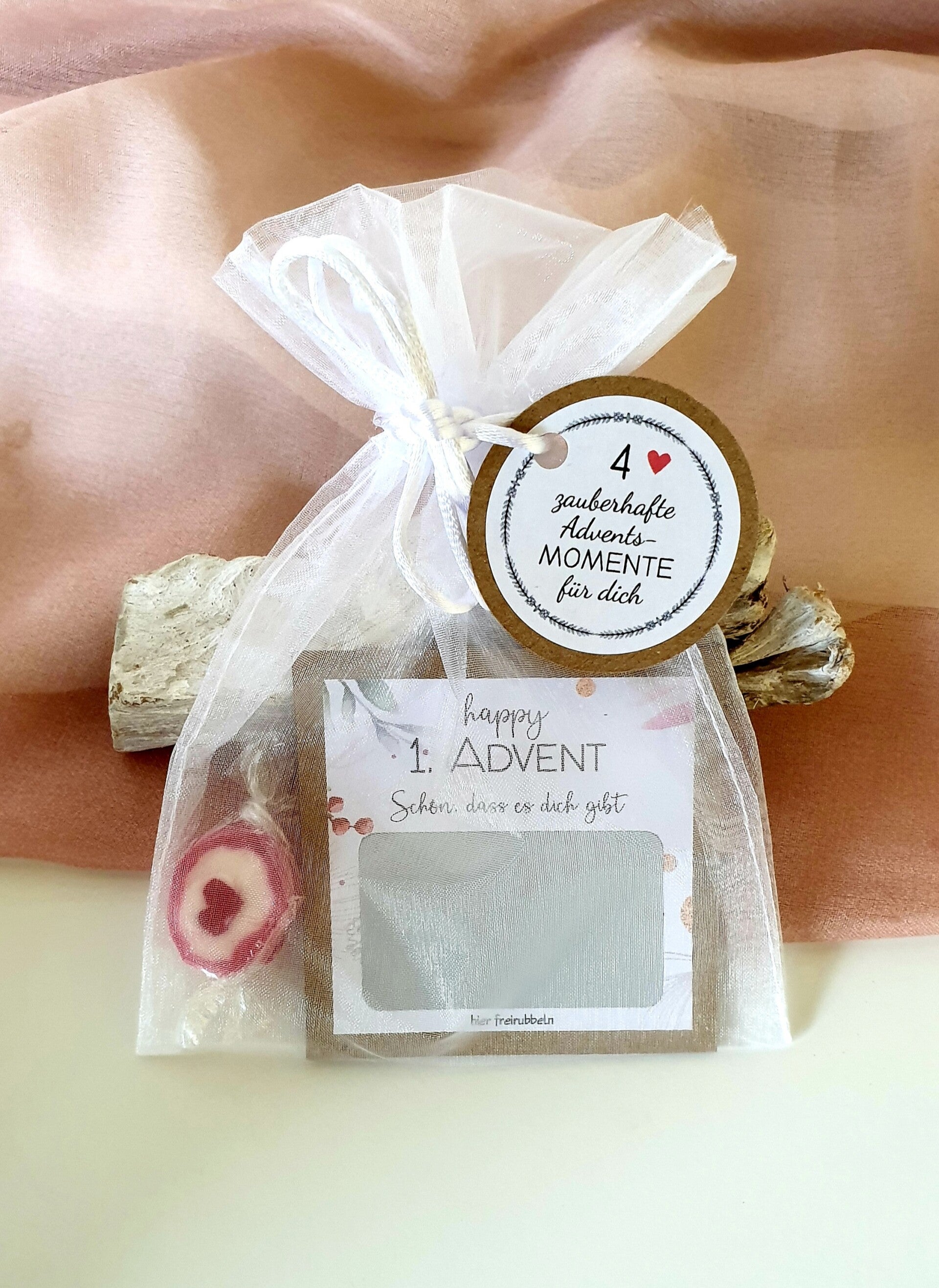 Neu gibt es diesen maximal entschleunigten Adventskalender mit VIER statt 24 Lose. Ein tolles Geschenk, das du deinen Liebsten an den vier Adventssonntagen machen kannst. An jedem Advents-Wochenende wird ein Los freigerubbelt.