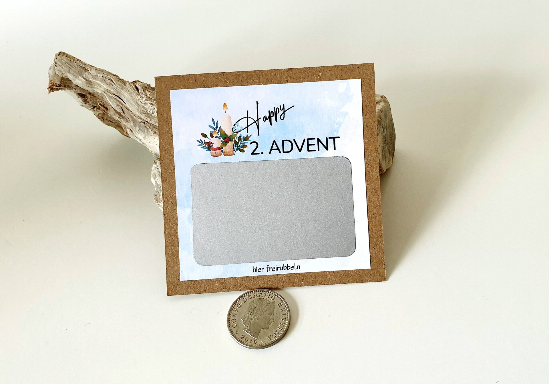 Neu gibt es diesen maximal entschleunigten Adventskalender mit VIER statt 24 Lose. Ein tolles Geschenk, das du deinen Liebsten an den vier Adventssonntagen machen kannst. An jedem Advents-Wochenende wird ein Los freigerubbelt.